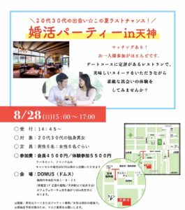 2022年8月20日 / 最終更新日時 : 2022年8月20日 kitahara2021 婚活・パーテイー 婚活イベントのご案内「サマーパーテイー」素敵な出会いへ 婚活の始まりは「パーテイーの体験参加」から Follow me! FacebookBlueskyCopy コメントを残す コメントをキャンセルメールアドレスが公開されることはありません。 ※ が付いている欄は必須項目ですコメント ※ 名前 ※ メール ※ サイト 次回のコメントで使用するためブラウザーに自分の名前、メールアドレス、サイトを保存する。