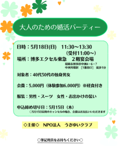 婚活イベント 春の縁結び大人の婚活パーテイー体験参加募集中!!